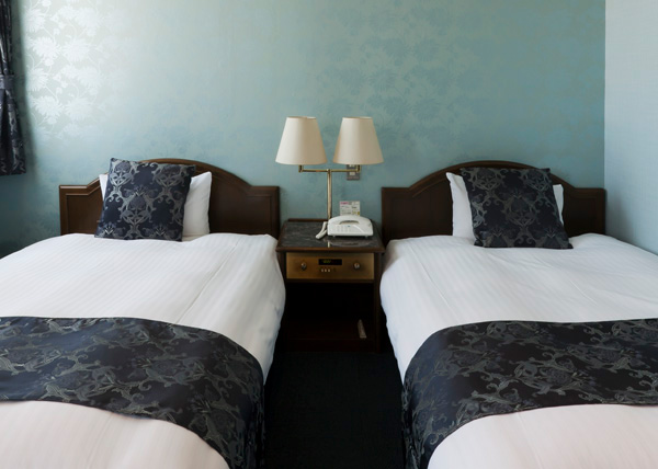 | ~ブルーを基調にしたシックな インテリアが魅力~ 20㎡~22㎡ シングルワイドベッド2台 Wi-Fi/有線LAN接続無料 空冷蔵庫 シャワートイレ |